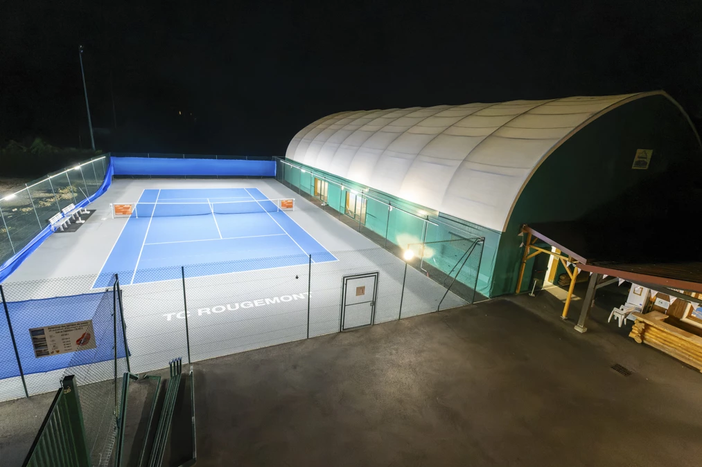 Face à l’augmentation du nombre de licenciés au Tennis Club de Rougemont et à la dégradation des courts due à l’usure, les équipements de tennis ont été rénovés et adaptés. Il s’agit de la réhabilitation de trois courts existants et de la couverture d’un court supplémentaire. Le club bénéficie donc désormais d’un court extérieur et deux courts couverts. Le projet a été accompagné par le Département en AMO** et a bénéficié d’un financement départemental de 183 370 euros (contrat P@C* et dispositif AMO **).
